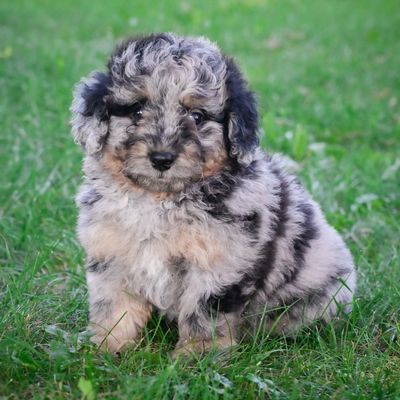 Aussiedoodle are a mixture of the Australian Shepherd and poodle. Unlike a purebred, whose sizes vary ever so slightly between male to female, mixed breeds have the capability of producing a wide range of weights and heights. Aussiedoodle accommodate those looking for the very petite dogs to those looking for a huskier companion. A toy Aussiedoodle packs all the grand personality and characteristic traits of this breed into a tiny body frame. If you’re looking for the compact, cute as they come component… the toy is where it’s at. A cautionary warning, toy size dogs tend to come with more health concerns. Before ever buying a toy size do your research. Maybe a purse dog is not what you had in mind? There's always the mini/miniature that's a little bigger than a toy but still very little. Then a standard Aussiedoodle is probably going to be your best avenue. But you also might not want to spend a small fortune to feed your dog. Maybe you have thought about the “Toy,” but it’s just too tiny, the "Mini," but it's still too little for the kids to play with, or the “Standard,” but it just seems too big. Looking for a dog that can play with you or your kids and not worry about them breaking? Want a dog that can run beside you and not have to be dragged or carries along, and not so big it pulls you along and you don't want to go broke trying to feed it? Let me introduce you to the "Moyen" Aussiedoodle the size that's just right! Are Moyen Aussiedoodles good family dogs? Moyen Aussiedoodles are excellent family dogs, including families with young children. They are small enough to cuddle on your lap and large enough to enjoy outdoor adventures. Moyen Aussiedoodles are a hardy breed that enjoys hiking, running, water, and other outdoor activities. They also make excellent service dogs and companions. The ability to choose the size that best fits your lifestyle and preference is one of the many benefits of this crossbreed.