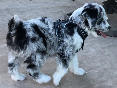 • F2B Aussiedoodle: (Poodle + F2 Aussiedoodle) 62.5% Poodle & 37.5%Australian Shepherd